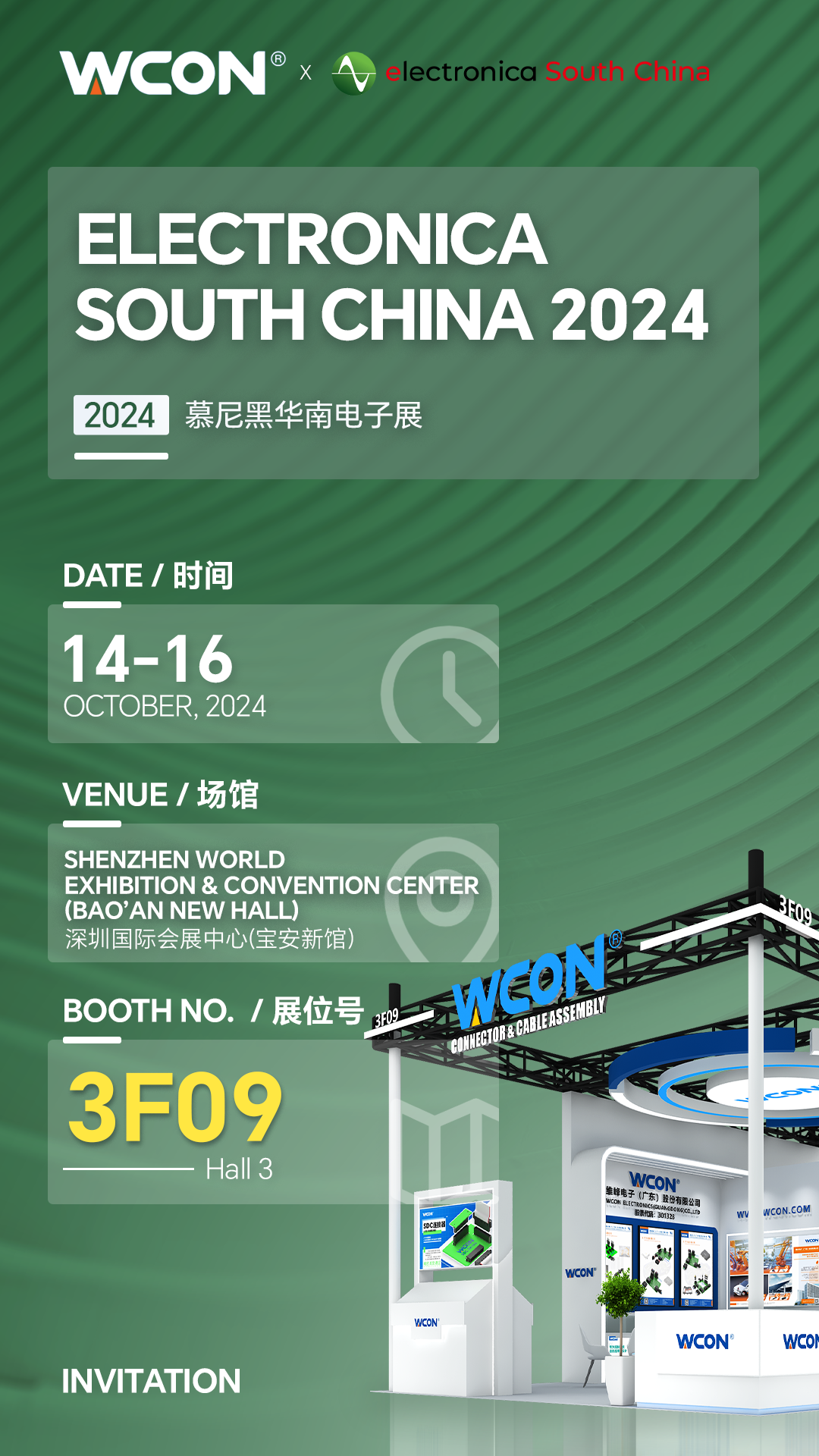 WCON位于 3號館,展位號 為 3F09