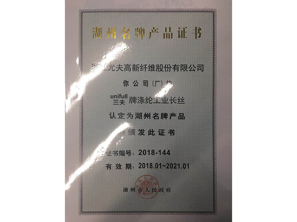 湖州名牌產(chǎn)品證書2018
